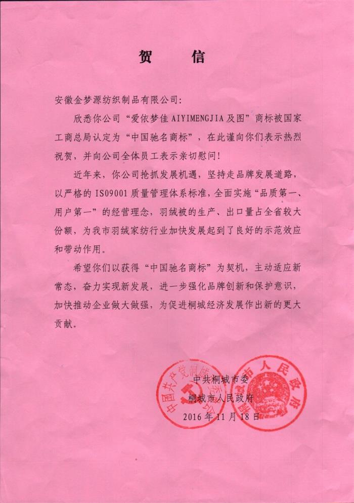 金梦缘-爱依梦佳AIYIMENGJIA获得中国驰名商标
